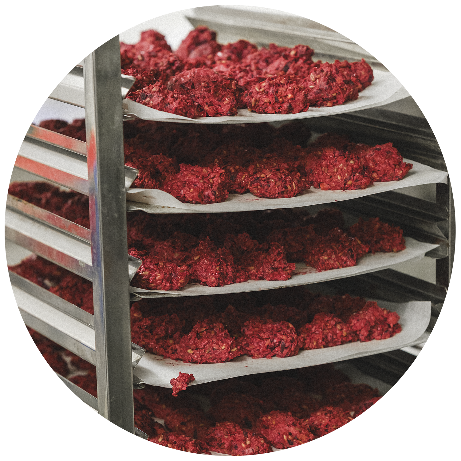 Tidigt på morgonen är våra kockar redan igång med att ta emot leveranser av färska grönsaker, göra matlådor och pressa juicer i vårt produktionskök i Årsta, Stockholm. Här lagas allt från grunden, från att blötlägga nötter och göra egen mandelmjölk till att laga vegobiffar och baka glutenfria kanelbullar och tårtor. Vi vill laga mat som man mår bra av med så mycket näring som möjligt i varje klunk och tugga.